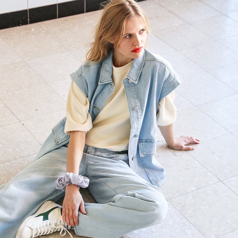 Makkelijk: mix denim + denim. Je favoriete jeans met jeanshemd, dat oldskool jasje met minirokje of een stoere overall, als je maar maximaal voor denim gaat. En nooit, never zonder een wit T-shirt natuurlijk…