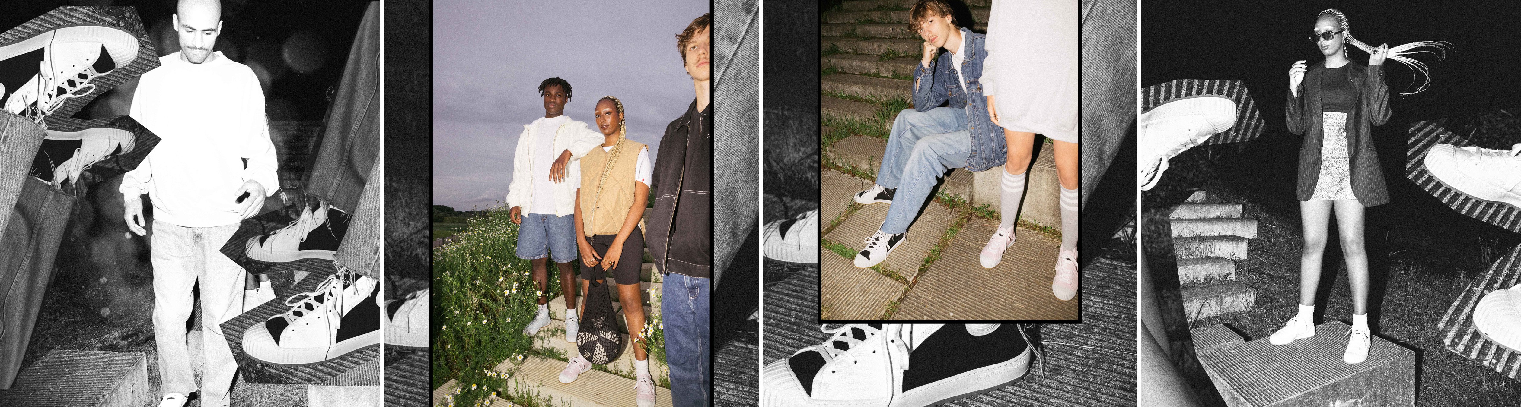 Bij Juttu: Komrads in zwart en wit, een reeks in frisse tinten plus een vegan collectie, 100% gemaakt van appelleder en gerecycleerde materialen.