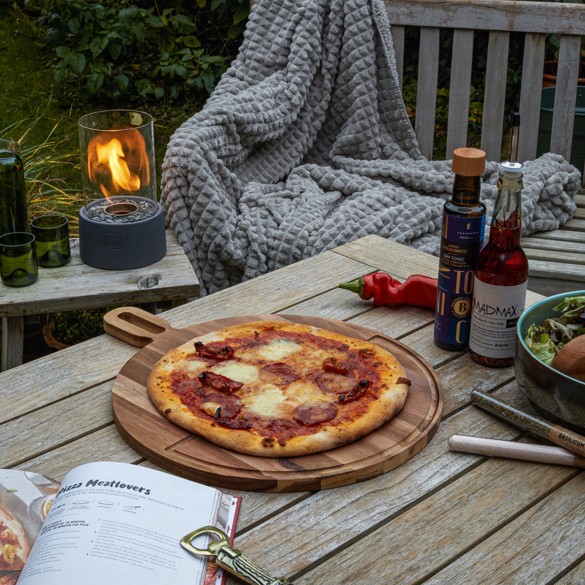 • Leg je pizza op de BBQ of steek hem in de oven.