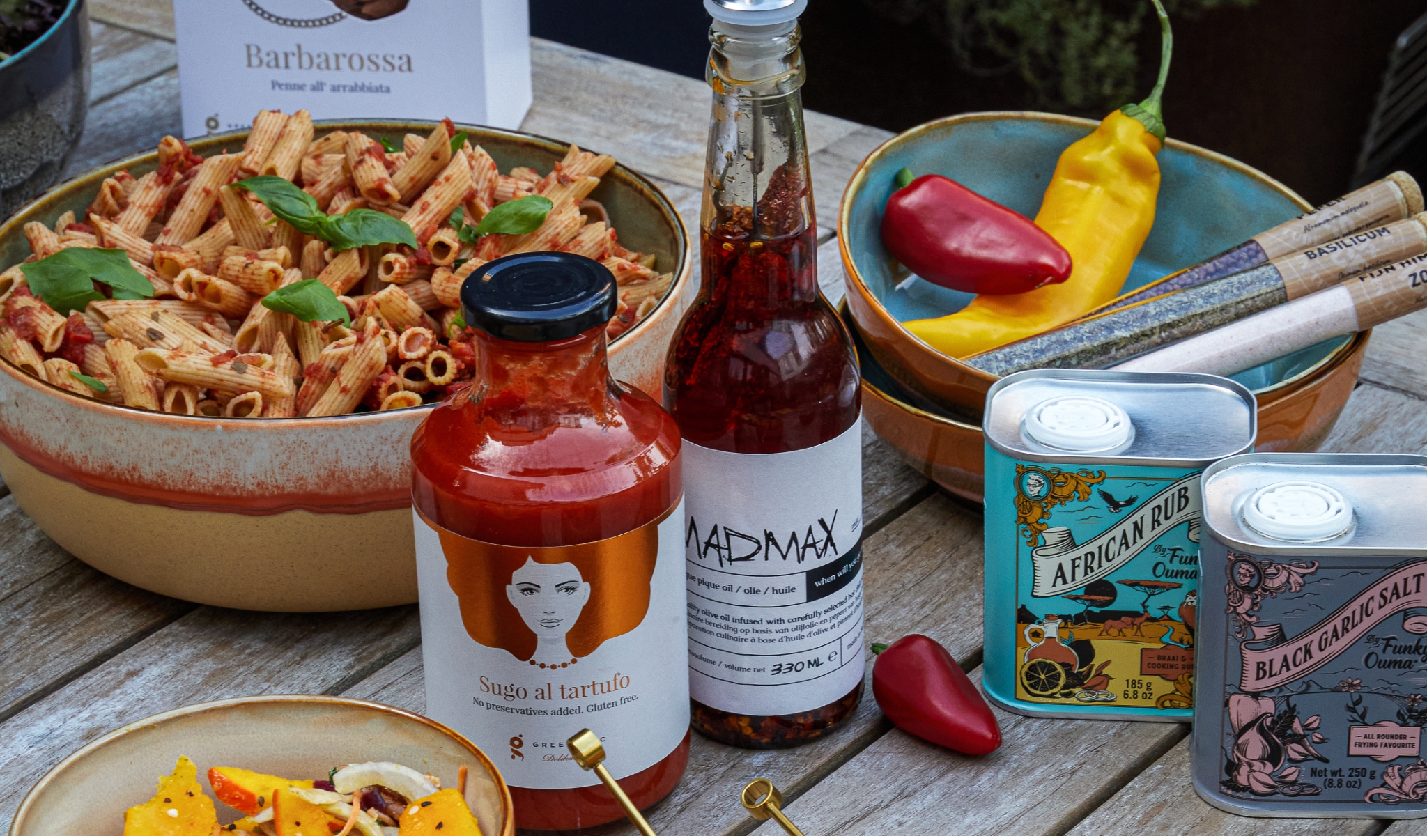 Met klassiekers als rozemarijn, tijm, oregano en natuurlijk barbecuekruiden kan je niet missen, maar experimenteer ook met verwarmende kruiden en smaakmakers zoals vijfkruidenpoeder, kurkuma, chili-olie, komijn, ras el hanout, chili, nootmuskaat en gerookt paprikapoeder.