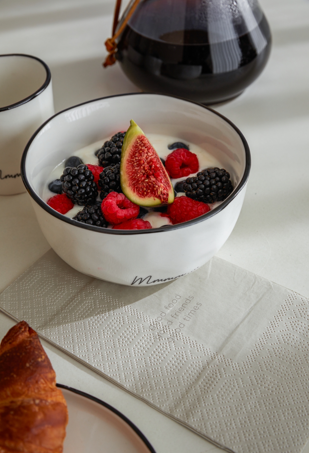 • Pick & choose: schijfjes banaan op je toast, blauwe bessen bij je granola, ananas bij je havermout… waar je maar zin in hebt. Groenten zijn minder populair bij het ontbijt, nochtans zorgen komkommer, kerstomaatjes, radijzen of een groentespread voor extra bite en afwisseling.