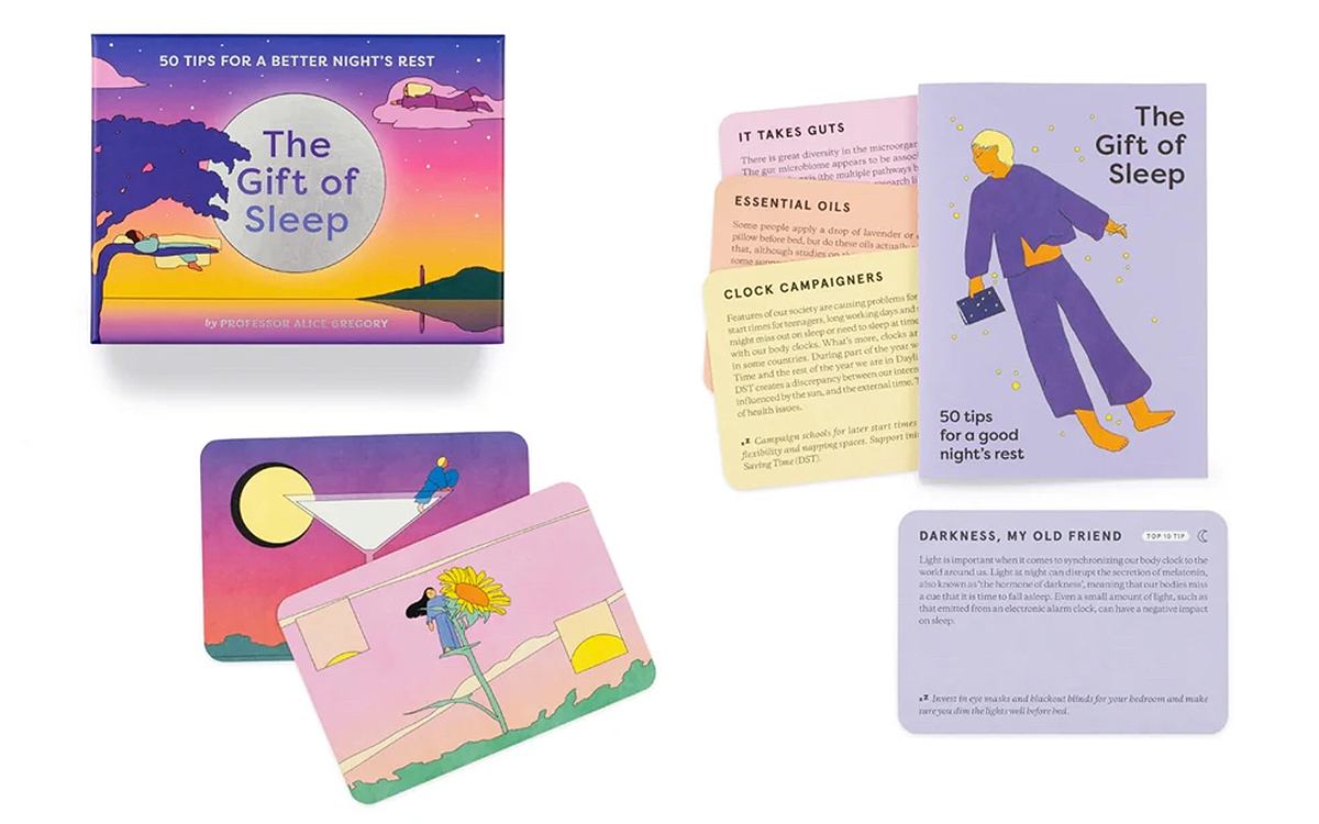 Kan jij de slaap niet vatten of slaap je net als een roosje? Het boek ‘The Gift Of Sleep 50 Tips For A Good Nights Rest’ van professor Alice Gregory. Deze box met vijftig kaarten en bijbehorend boekje biedt nauwkeurig en actueel wetenschappelijk advies om je slaap te verbeteren.