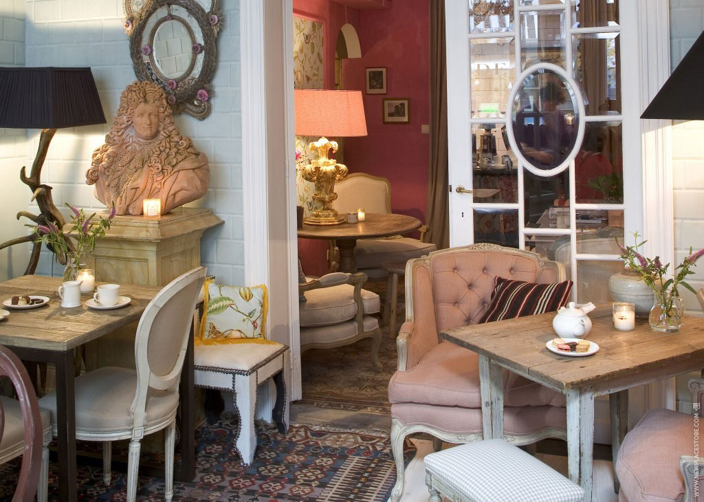 In het chique theesalon van Claude nip je van een kopje thee in Franse boudoir stijl en ontdek je behalve scones, sandwiches en taartjes ook macarons op een rijkelijk versierd schoteltje. Het interieur is très over-the-top en alle meubels en tierlantijntjes zijn bovendien te koop.